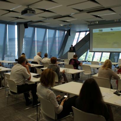 Mag. Slavi Pirš je na konferenci predstavila rezultate projekta, to je pet izvedenih usposabljanj za pogajalce, Pogajalski priročnik, skupina certificiranih pogajalcev in novo ustanovljeni Klub certificiranih pogajalcev za kolektivna pogajanja.